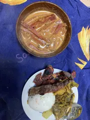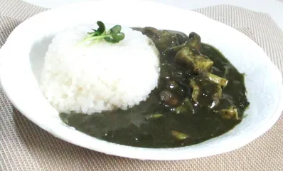 黒練りごま和風カレー カレー粉、コリアンダーパウダー、ガーリックパウダー、黒練りごま、白だしを使いました。米粉でとろみをつけました。和風な感じのカレーです。ちよっと雰囲気を変えたら、食卓が盛り上がりました。