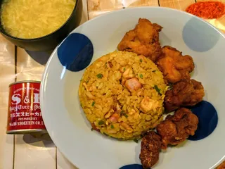 唐揚げ炒飯カレー味 昨日町中華に食べに行って、サンマー麺を頼んだけど、その後メニュー見て気になり過ぎた唐揚げ炒飯カレー味。 なので、今夜は唐揚げ炒飯カレー味を作りました。カレー味は少し控えめな感じです。 炒飯の味付けは鶏丸ごとがらスープ、ブラックペッパー、醤油、カレー粉です。具は玉子、ベーコン塊、長