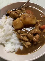 ポテトとチキンのルンダン風味のカレー、パン😗