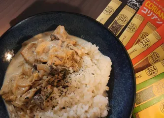 スパイスホワイトカレー ブラックペッパー、クミン、ターメリック、コリアンダーを使ってスパイスホワイトカレーにしました