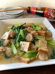 ベビーホタテ&厚揚げ&小松菜のオイスター炒め