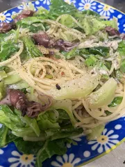 春つくしパスタ 久々の投稿。なかなか、スパイスもりもりできず。。春キャベツにホタルイカでパスタ!クリーム系にしたので、ペッパーのアクセントが良きでした
