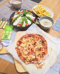 『自家製サラダチキンとピザ』