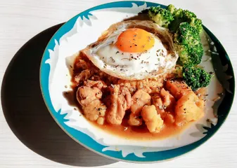 チキンとカリフラワーのカレーライス🍳 クミンたっぷり目で炒め煮込んだ鶏もも肉とカリフラワー、香りがたまりませんでした~⭕️