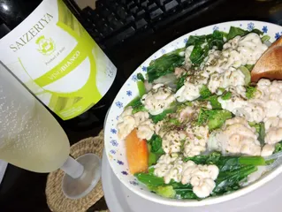 鱈の親子鍋 夕方値引きで鱈のアラとたちをお安くゲットしたので、まだまだ寒いし鍋にしよう!と思いたち〜。AIにオススメレシピを聞いた結果、アクアパッツァ風。レンジ加熱でちょっと吹きこぼれてしまったけど、美味しく出来てお酒も進む♪日本酒に合わせたレシピも提案してもらったので、明日は和風で飲もうかしら。