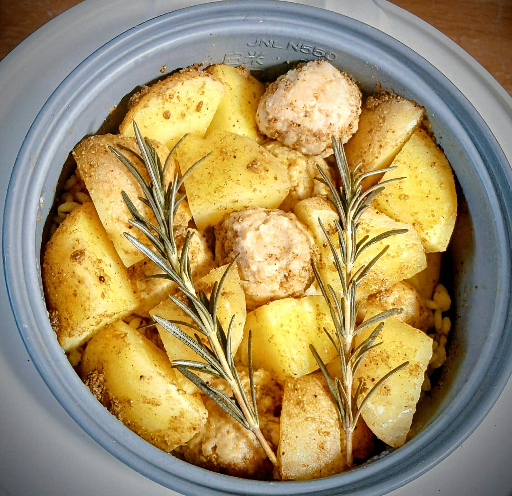 投稿を表示インパクトある炊きあがりですね。ローズマリーの香りと鶏肉団子のジューシーさ、ジャガイモのほくほく感、全部一緒に楽しめておいしそう!