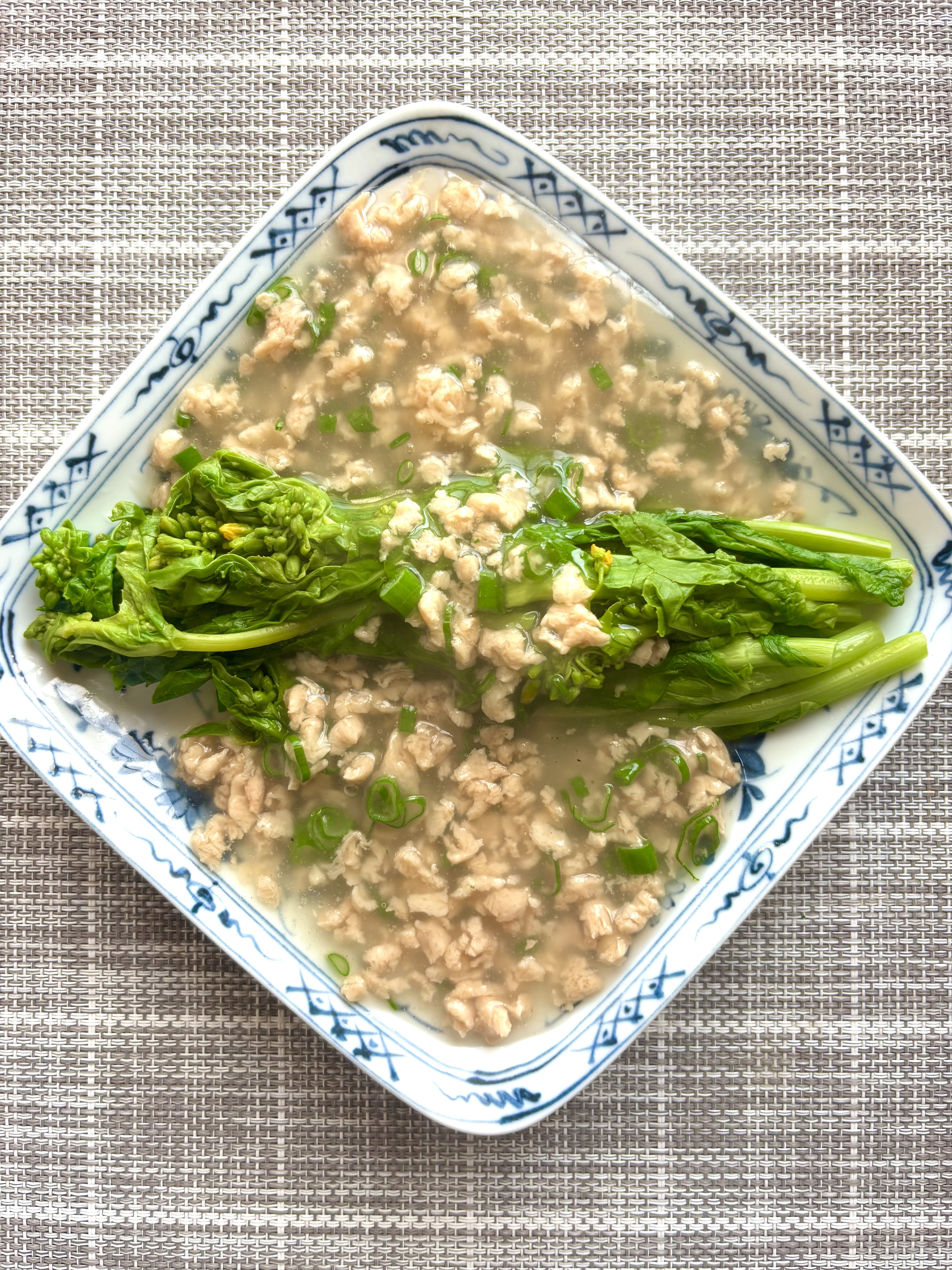 トップ > フォトレポート > おすすめレシピ > 菜の花のヘルシーあんかけ tochi 2026/03/17 14:18 菜の花のヘルシーあんかけ 菜の花を下茹でする。塩を足して、大豆のお肉を水に浸して5分。柔らかくなったらザルに開ける。鍋に鶏がらスープを温め、大豆のお肉、塩胡椒、醤油で味を整えて、アサツキを加えて、片栗粉でとろみ。さっぱりした鶏がらスープに大豆のお肉を加えたあんでヘルシーに菜の花を美味しく。 いいね 共有する 共有する X facebook LINE リンクをコピー コメントする 1 件の返信 (新着順) ミュートしたユーザーの投稿です。 投稿を表示 SPICE&HERB COMMUNITY事務局 2026/03/17 16:48 tochiさん、こんにちは! 菜の花を存分に楽しめるレシピですね👀✨ とっても美味しそうです♪ いいね 返信する ミュートしたユーザーの投稿です。 投稿を表示 tochi 2026/03/20 15:28 SPICE&HERB COMMUNITY事務局 こんにちは。 菜の花のほろ苦さも味わえるようにさっぱりヘルシーあんかけにしました^_^ いいね 返信する