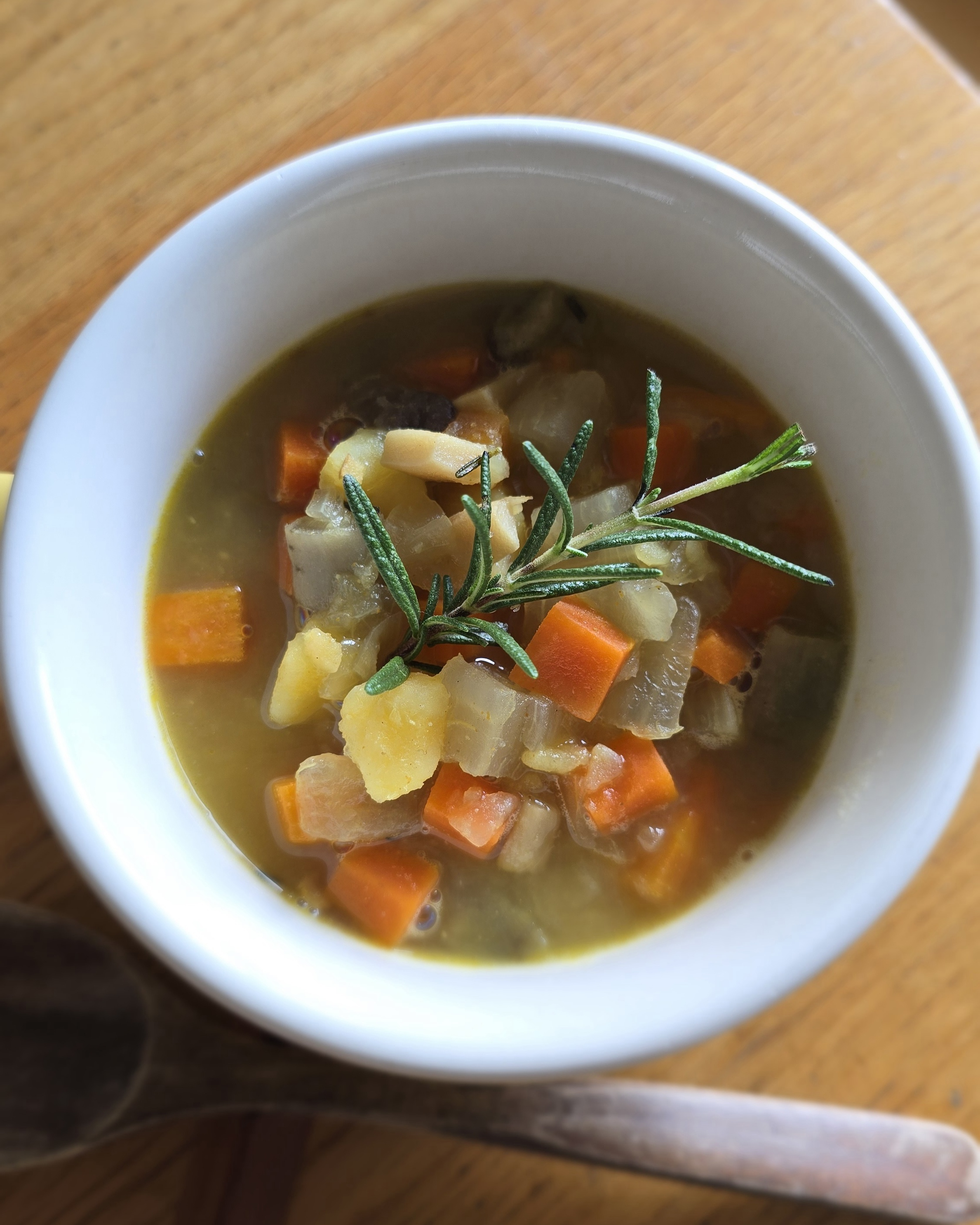 ローズマリーのアクセントが利いたカレースープ、とっても美味しそうです♪
