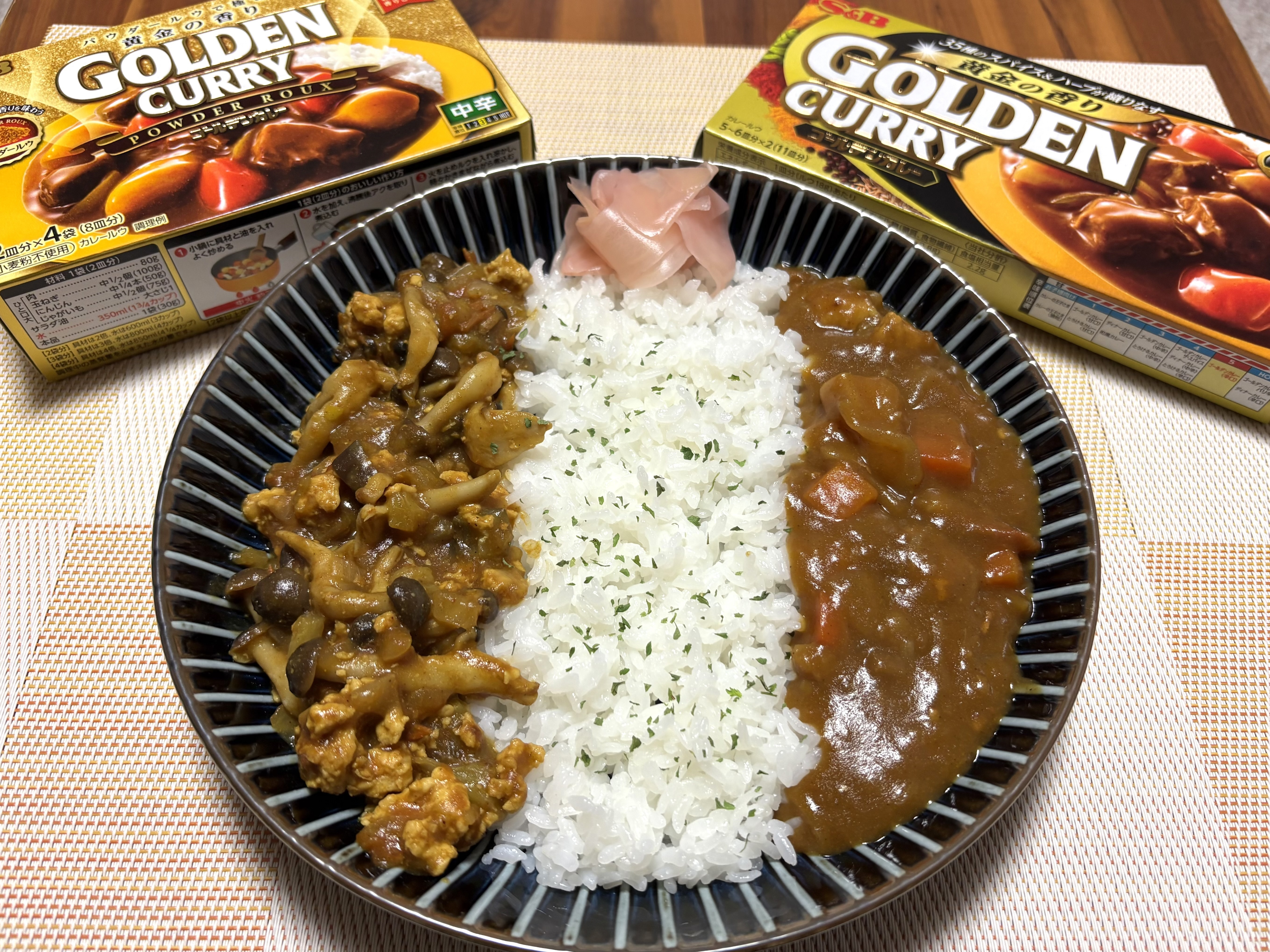 ですが!ゴールデンカレーの固形タイプとパウダータイプを使ってそれぞれ作ってはみたものの、作り方も材料もそれぞれ違うので、食べ比べにはならず…(笑)