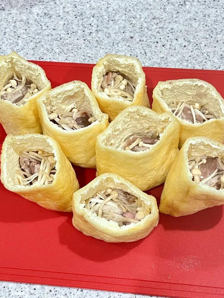 油揚げに詰めて甘辛煮‼️