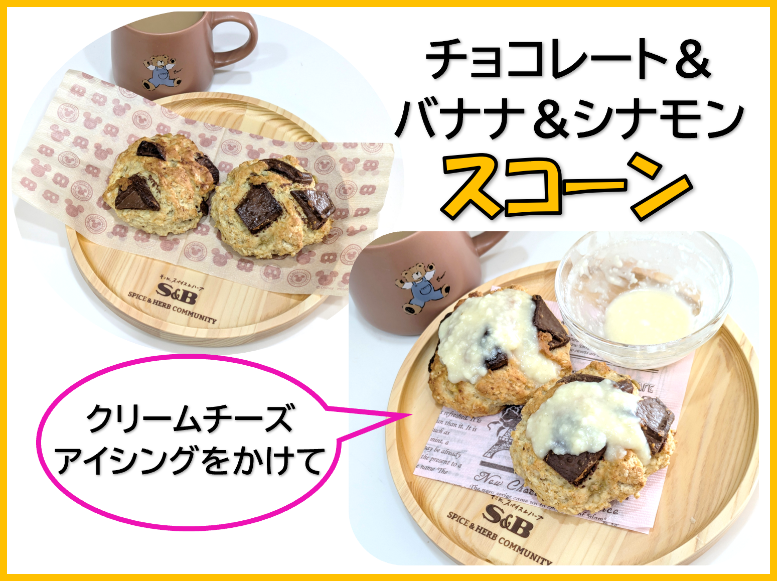 プレーンのバージョンとクリームチーズアイシングをトッピングしての