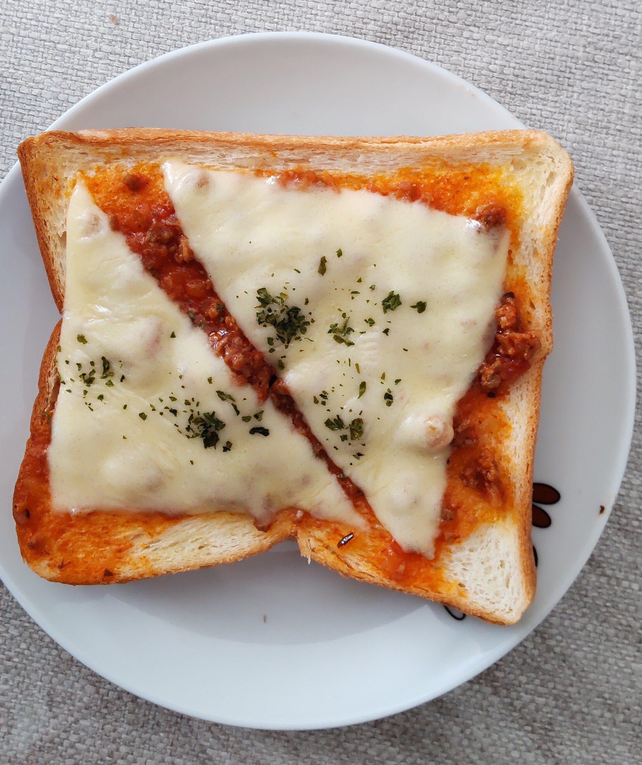 投稿を表示作り置きのミートソースを使ってのピザトースト、美味しそうですネ✨️