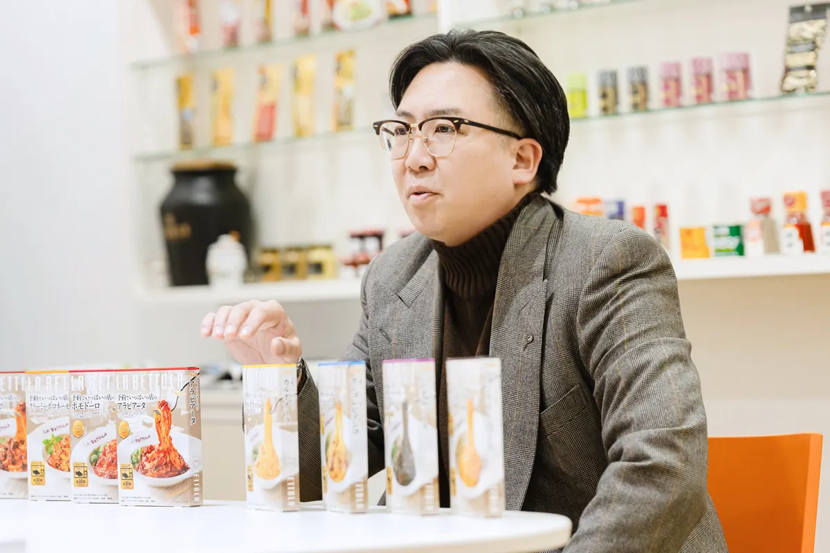 「パッケージは売り場に並び、お客さまに注目をいただいて初めて完成します」と話すのは、マーケティング企画室デザイン広告ユニットの遠藤健一さんです。パッケージ制作の流れや大切にしている考えなど、日々の業務について幅広くお伺いしました。2026年2月9日にリニューアル発売した「予約でいっぱいの店のパスタソース」のパッケージに関してもこだわりや想いをお聞きしました!