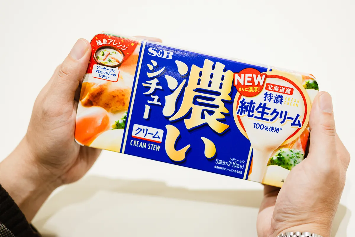 商品の味わいだけでなく、パッケージにもこだわるからこそ、ときには会議で大きな変更が生じてしまうこともあります。遠藤さんがこれまでの仕事で印象深かった商品のひとつとして「濃いシチュー」ブランドを挙げてくれました。