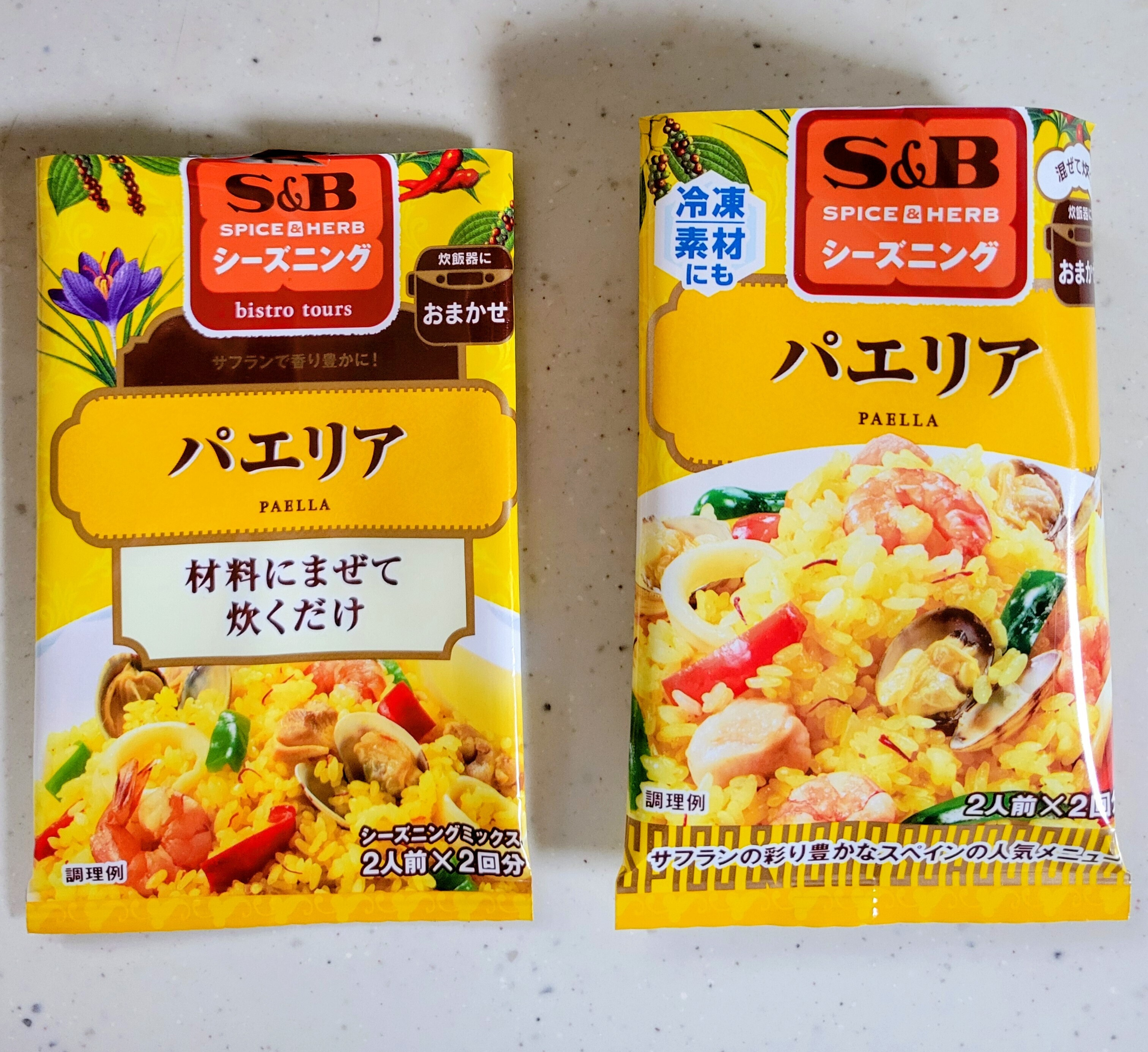 投稿を表示新パッケージの方がパエリアがおいしそうに見えますね。QRコードでレシピも検索出来て便利。比較すると面白いですね。