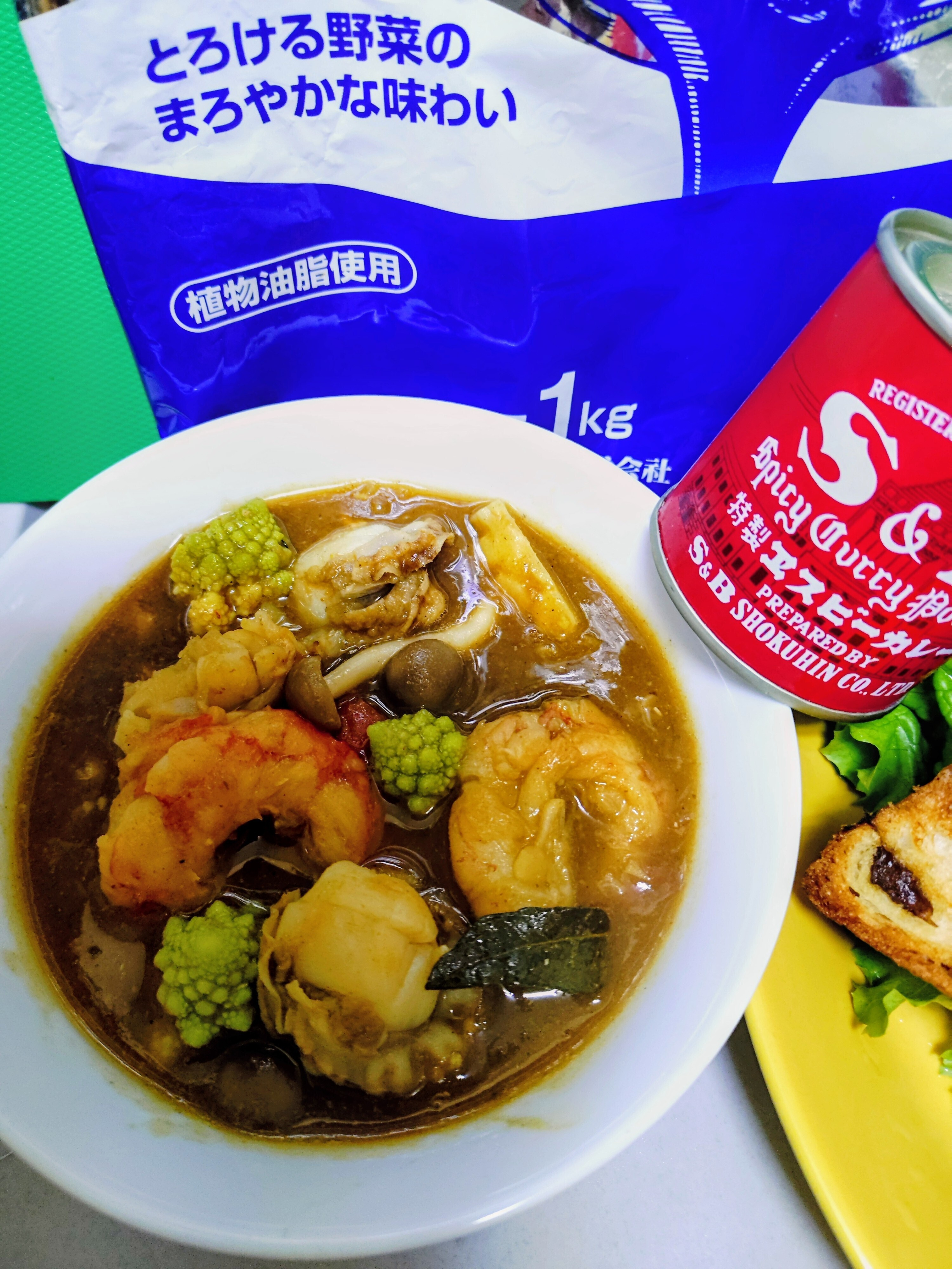 投稿を表示ハーブが香る海鮮モノたっぷりのカレーですね~🤣
