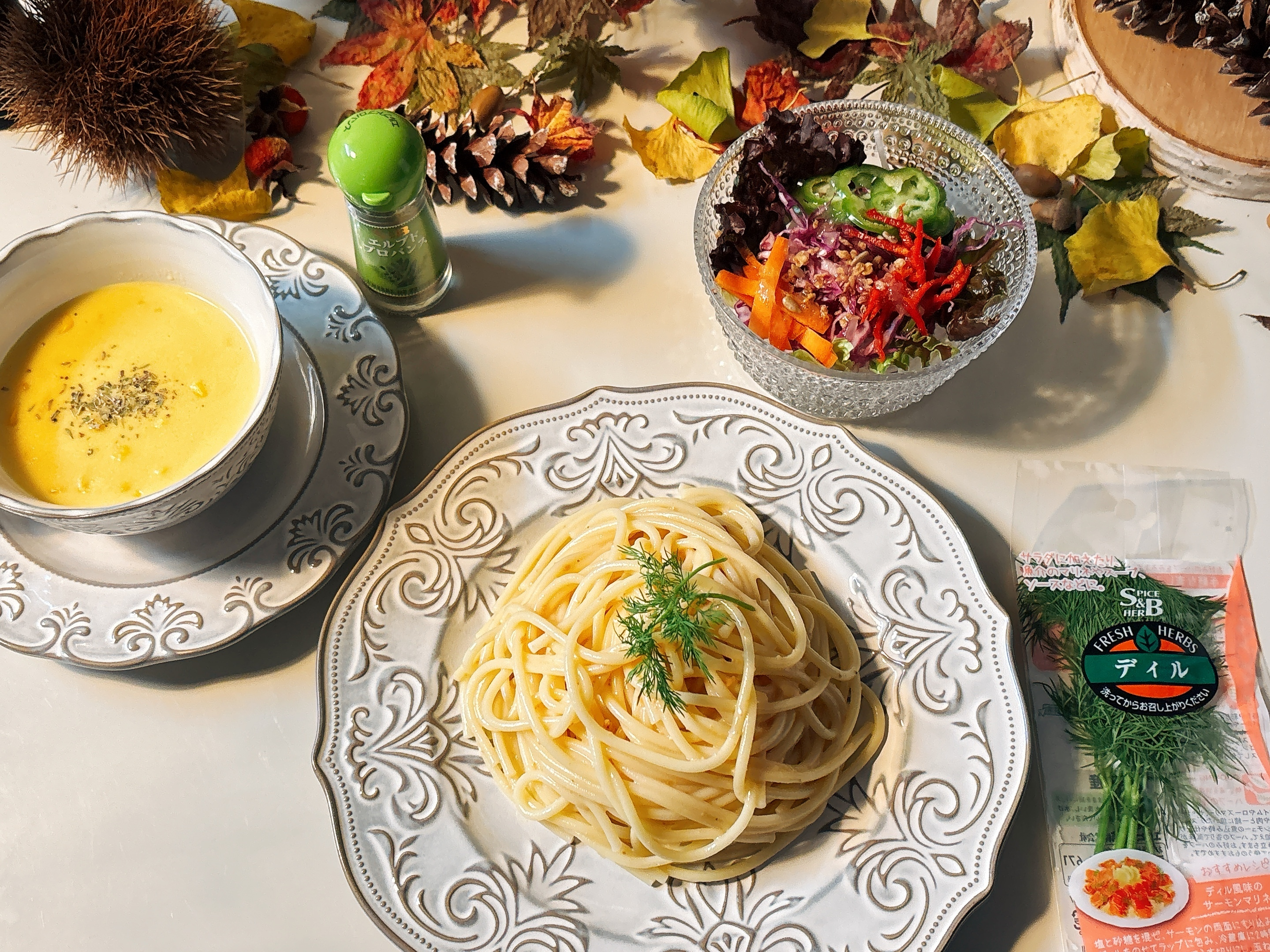 トップ > フォトレポート > 今日のごはん > たらこパスタに。。。ディル添えてみた笑 えすた💫 2025/11/06 04:14 たらこパスタに。。。ディル添えてみた笑 青紫蘇はない。 海苔はある。 だが、、この雰囲気は緑が欲しい笑 と思った私は「エスビーフレッシュハーブ ディル」を添えてみたのでした。 アリというか、違和感ないかもです🤭 スイートコーンスープはレトルトパウチ商品でしたが、「エルブドプロバンス」をぱらりしました ディル えすた ディル エスビーフレッシュハーブ イタリアン エルブドプロバンス いいね 共有する 共有する X facebook LINE リンクをコピー ディル 甘みのある爽やかな香りで、魚介のマリネなどの魚料理のほか、サラダやスープなどにも使われます。ヨーグルトやクリームチーズ、マヨネーズともよく合い、ポテトサラダやマカロニサラダなどもおすすめ。種子同様ビネガーとも好相性で、ピクルス液の香りづけやハーブビネガーにも用いられます。 詳細を見る コメントする 1 件の返信 (新着順) ミュートしたユーザーの投稿です。 投稿を表示 SPICE&HERB COMMUNITY事務局 2025/11/06 11:10 えすたさん、こんにちは! ディルのトッピング、写真映えしますね👀✨ とっても美味しそうです♪ いいね 返信する ミュートしたユーザーの投稿です。 投稿を表示 えすた💫 2025/11/07 17:36 SPICE&HERB COMMUNITY事務局 ありがとうございます😃 栗原はるみさんのEC限定販売セットの付属トートにディルの絵柄…素敵すぎます いいね 返信する