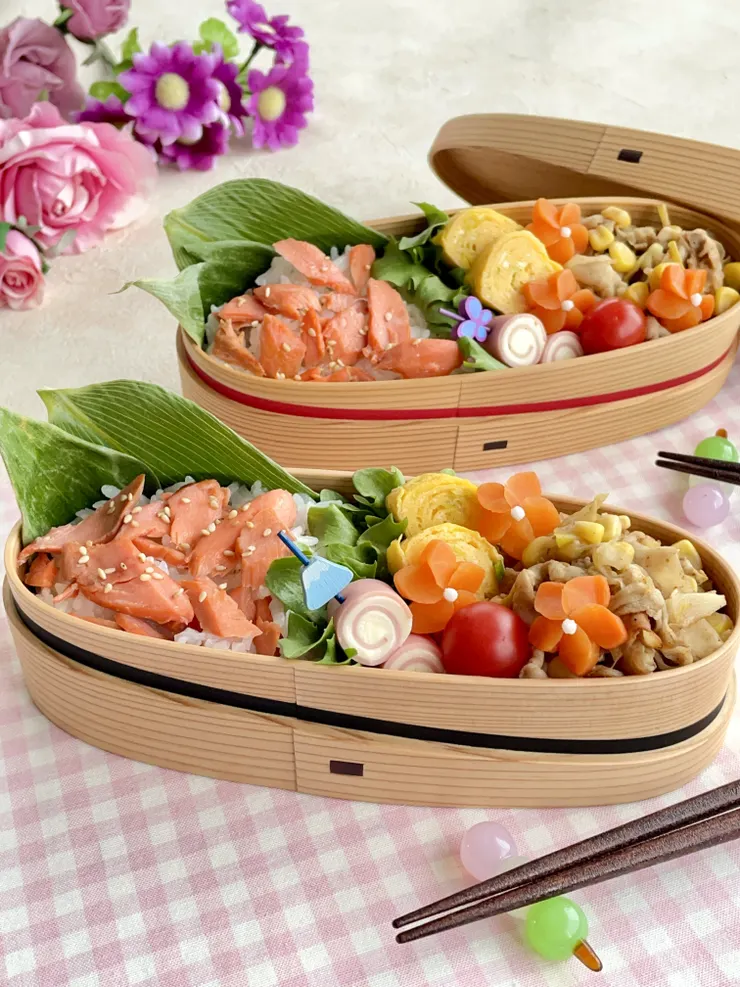 お弁当🍱もニンジンの立体的な飾り切りなど見ていてワクワクしますね。