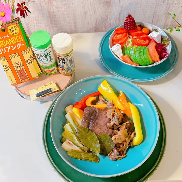 サラダは「マジックソルト」を振りかけて、酢キャベツと共にいただきました♪