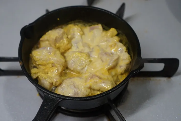スキレットで作るタンドリーチキン、とっても美味しそうです👀✨