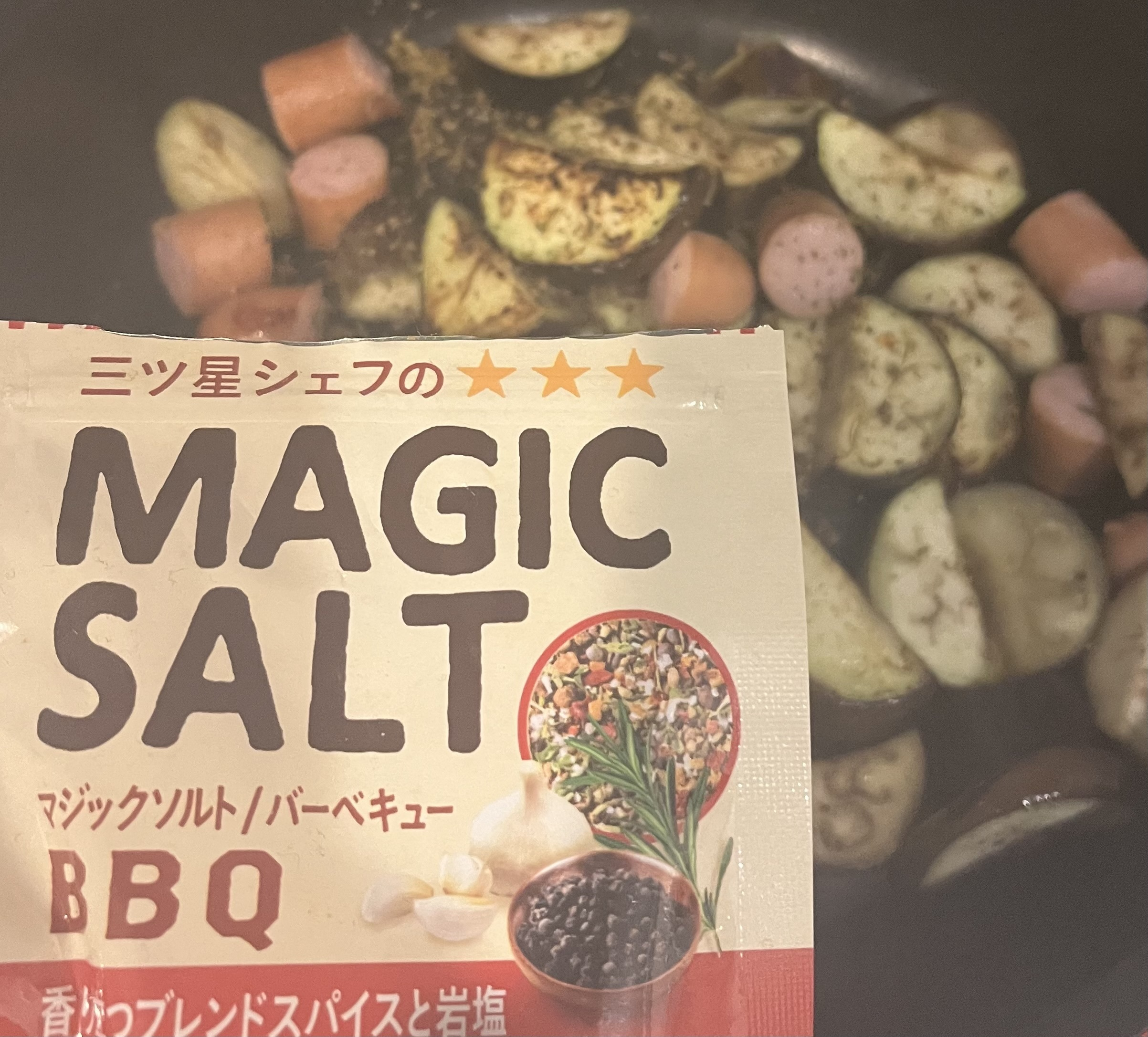 投稿を表示なす🍆とウインナーを炒めてBBQ味のマジックソルトを振りかけたら〜美味しく変身なんですね😋