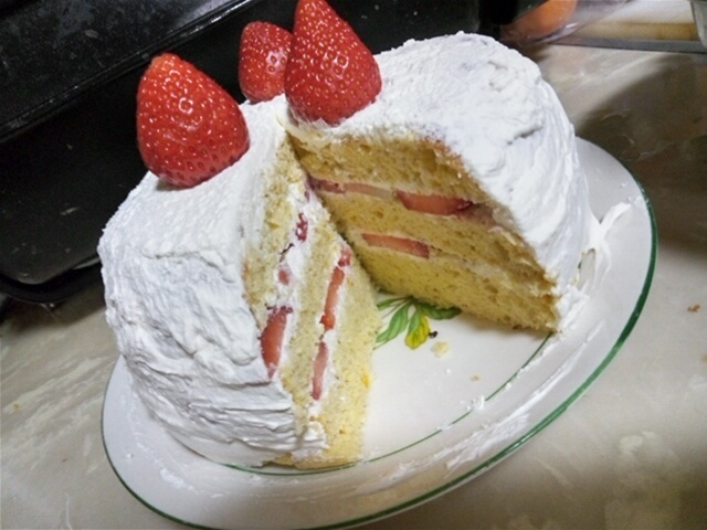 それはそれとして、生クリームのホイップをうっかりやり過ぎて、分離が始まってホロホロになってしまってます。イチゴも古いものなので、誰にもバレないうちに急いで食べるぜー。超食べるぜー。