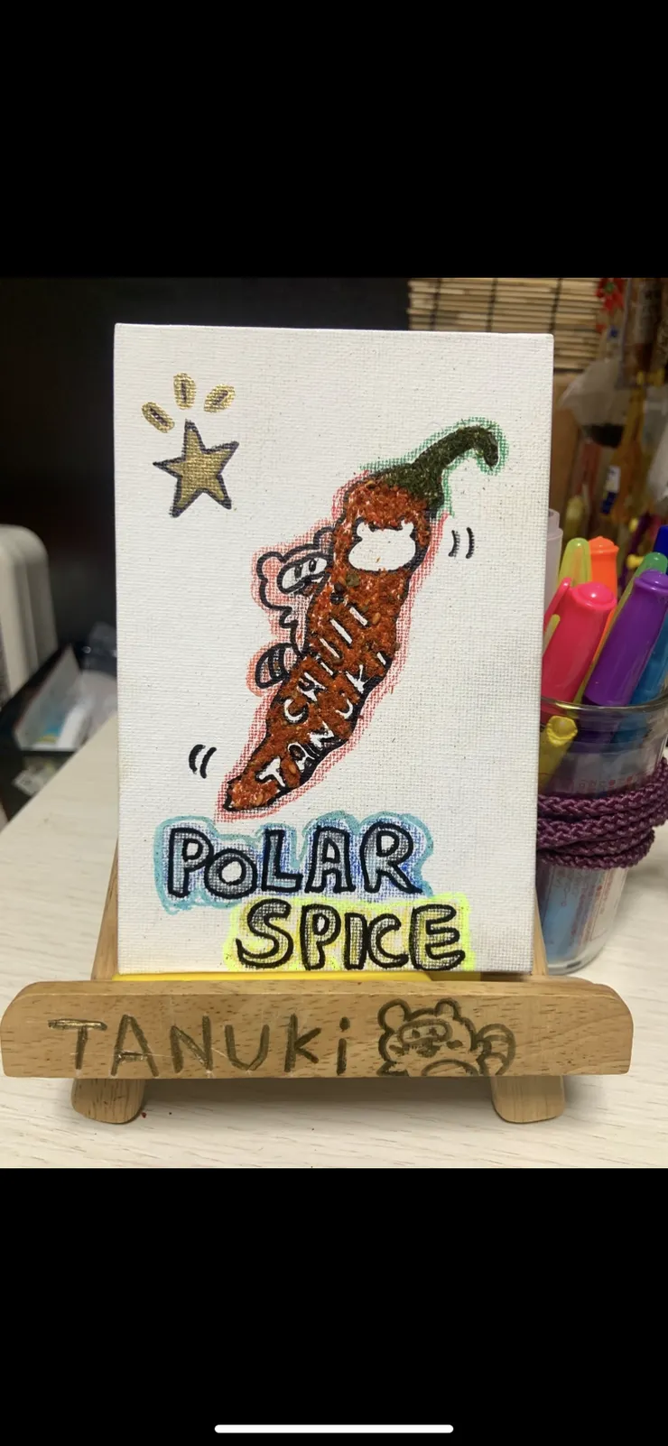 投稿を表示あっ優しいキャラのたぬきさん、見〜つけた❗️唐辛子のロケット🚀で北極星までひとっ飛びかしら?