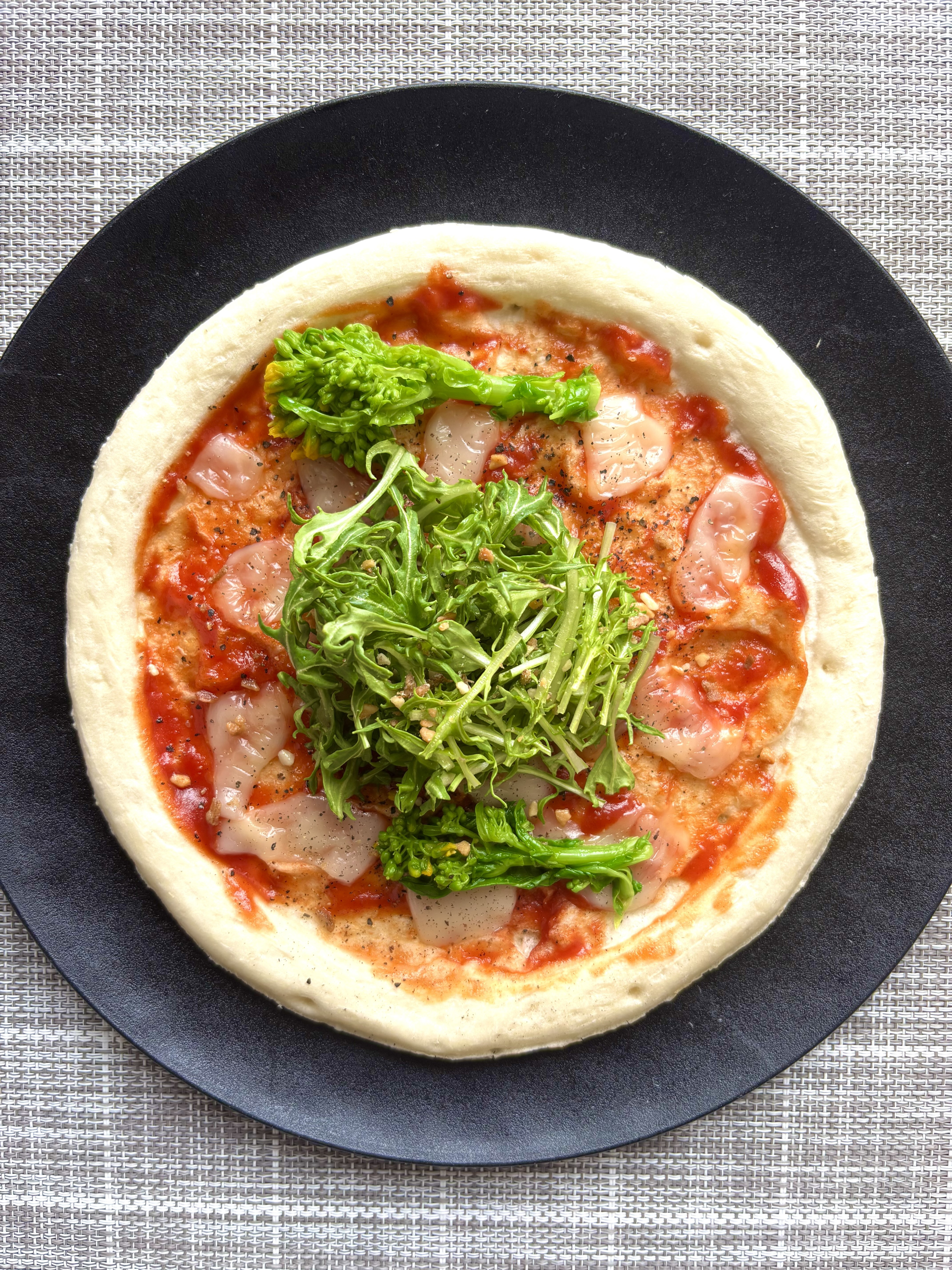 トップ > フォトレポート > おすすめレシピ > 水菜と菜の花のコチジャンピザ tochi 2026/02/27 12:10 水菜と菜の花のコチジャンピザ ケチャップとコチジャンを混ぜてピザ生地に塗ってチーズを乗せ、ブラックペッパーを振る。 オーブンでチーズが溶けるまで焼く。 チーズが溶けたら下茹でした菜の花と水菜を乗せ、トリュフ風味ナッツを振りかける。 コチジャンで韓国風にした水菜と菜の花のピザは、シャキシャキとトリュフ風味が最高! いいね 共有する 共有する X facebook LINE リンクをコピー コメントする 2 件の返信 (新着順) ミュートしたユーザーの投稿です。 投稿を表示 しーちゃん 2026/02/27 14:17 韓国風ピザ美味しそう🍕 ピリ辛なのかな? いいね 返信する ミュートしたユーザーの投稿です。 投稿を表示 SPICE&HERB COMMUNITY事務局 2026/02/27 14:16 tochiさん、こんにちは! 甘辛いピザ、とっても美味しそうです♪ トリュフ風味のアクセントも素敵ですね👀✨ いいね 返信する ミュートしたユーザーの投稿です。 投稿を表示 tochi 2026/02/27 14:18 SPICE&HERB COMMUNITY事務局 こんにちは。 辛さも水菜でシャキシャキさっぱり食べれました^_^ いいね 返信する