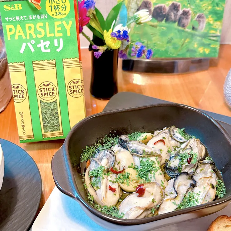 【パセリたっぷり牡蠣のアヒージョ】前回🔗