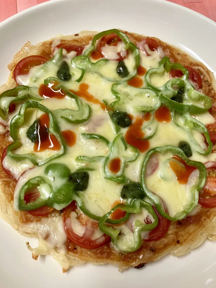 茹ですぎて残ってしまい冷凍しておいたそうめんでピザを作りました🍕