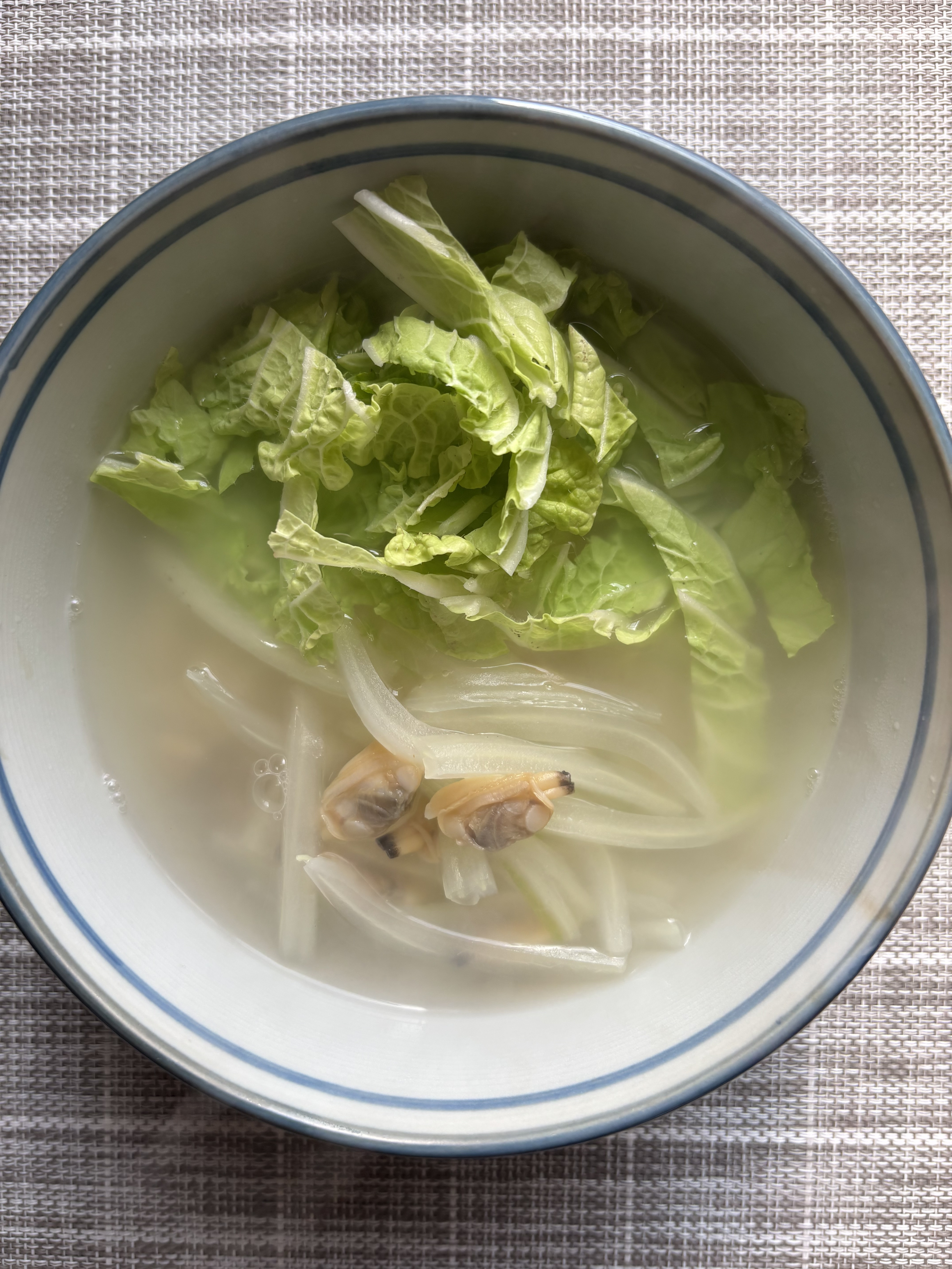 トップ > フォトレポート > ちょい足しアレンジ > とろシャキアサリ白菜白湯麺 tochi 2025/11/08 12:13 とろシャキアサリ白菜白湯麺 剥きアサリ適量、鶏がらスープ400ミリ、中華麺90g、塩適量、白菜3枚白菜を白い部分と葉に分けて切る。鶏がらスープに白菜の白い部分とアサリを入れて温める。塩で味を整えて一度沸騰させて白く濁らせる。茹でた中華麺を器に入れてスープを入れたら白菜の葉を生のまま盛り付ける。トロトロの白菜とシャキっとした葉が良い食感!アサリ白菜白湯麺 いいね 共有する 共有する X facebook LINE リンクをコピー コメントする 0 件の返信 (新着順)