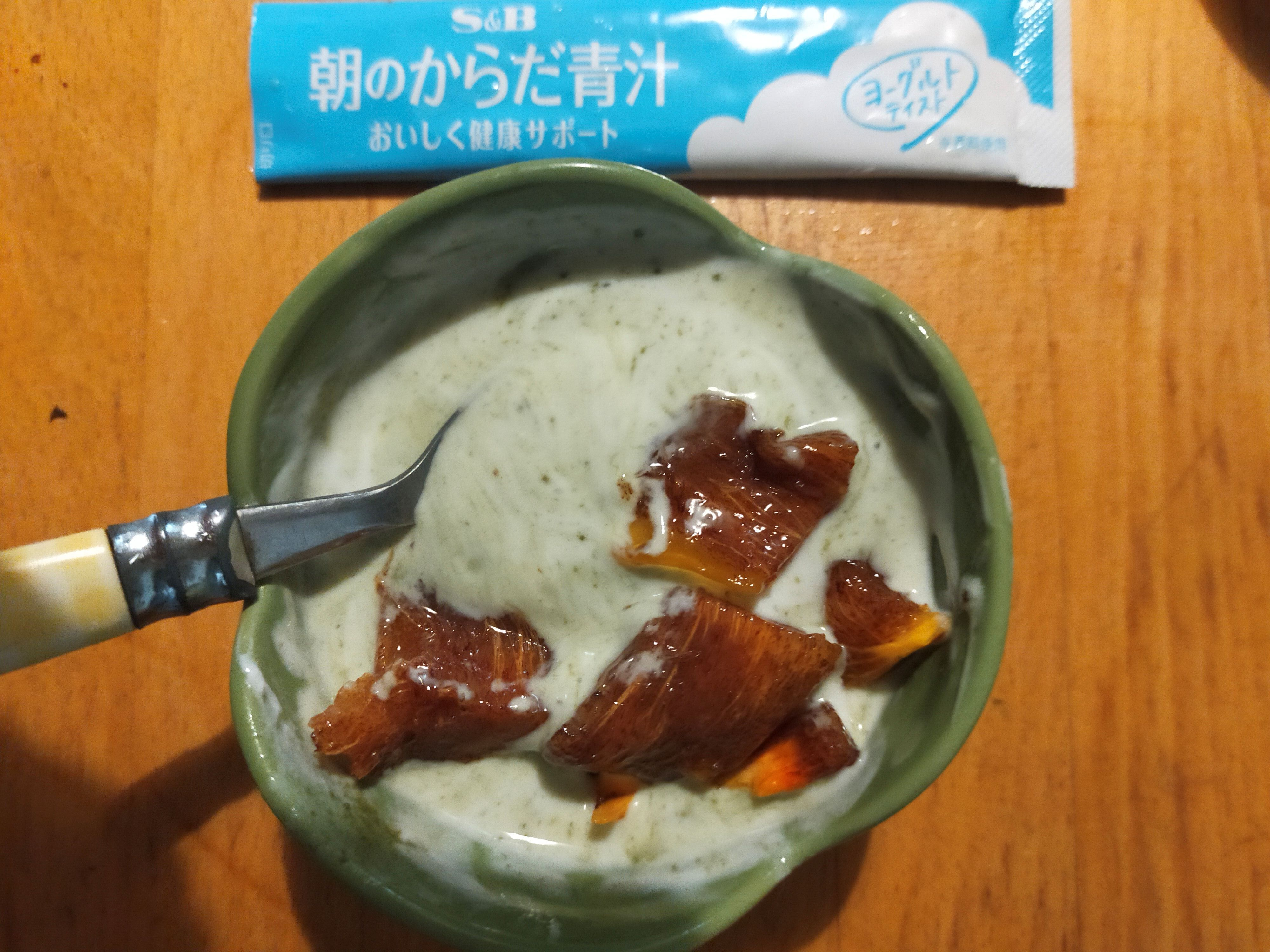 朝のからだ青汁、ヨーグルトと合わせていただきありがとうございます♪