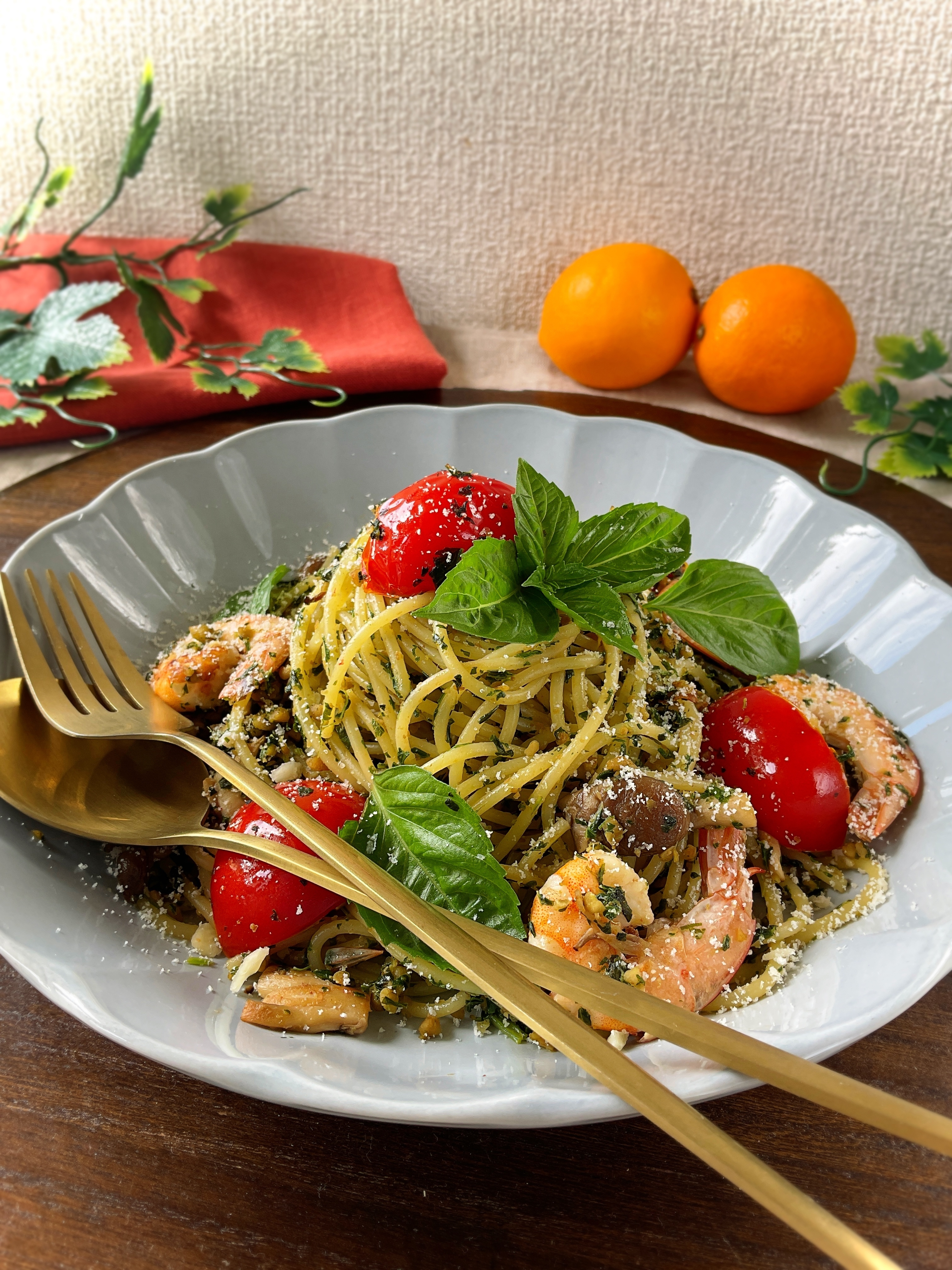 ジェノベーゼにえびを入れて食べるアイデアを知り、真似たくなりました。