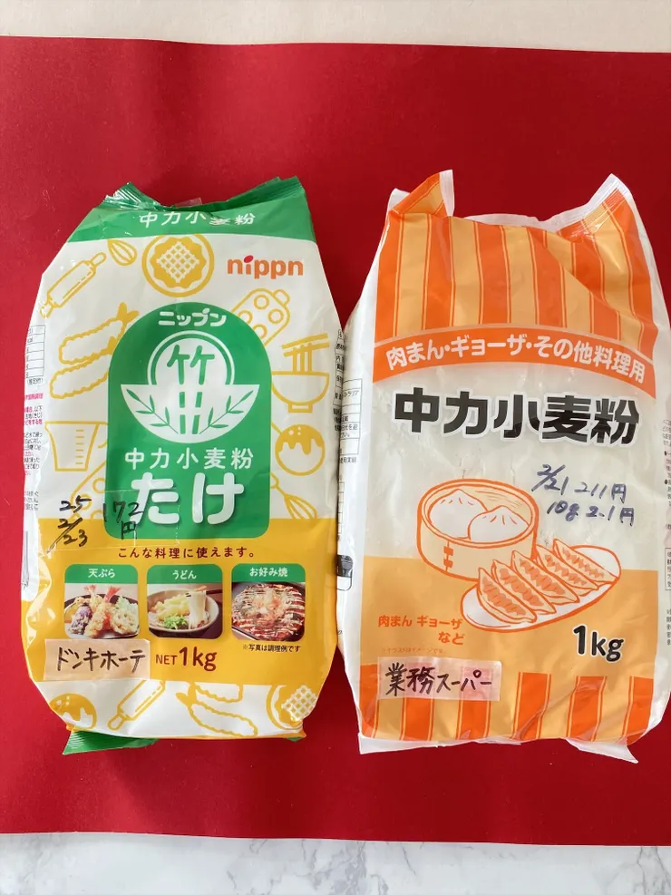 うどんは最近やたら作ってる手打ちうどんです。倹約家界隈では必須の日本製粉の「たけ」という中力粉1キロ172円です。