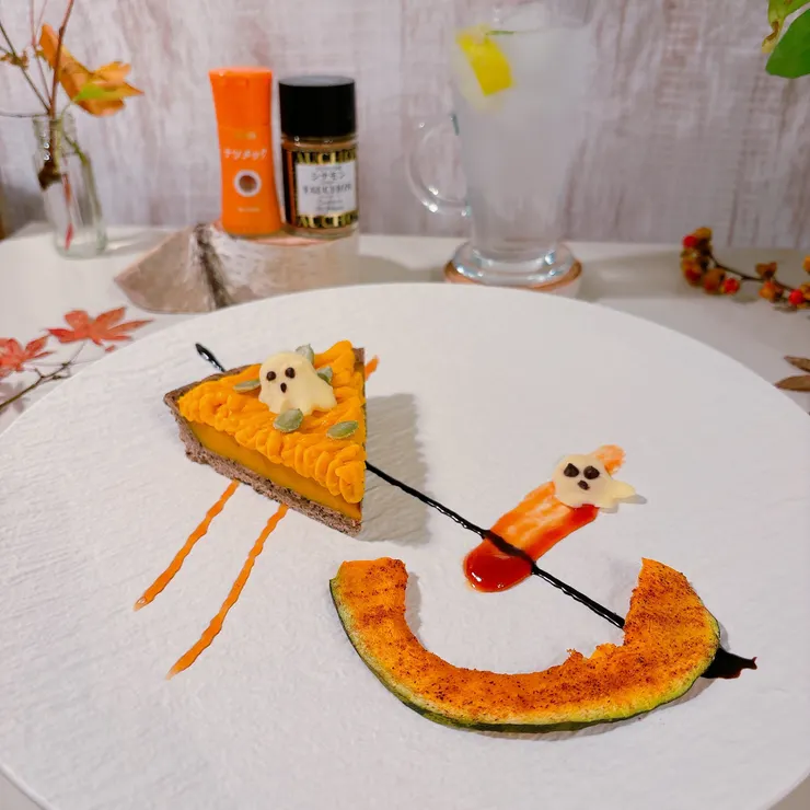 もう少し厚みをつけても良かったな、と思ったカボチャ。「ナツメッグ」を振りかけてカリッと焼き上げ、添えました🎃(メース使い切って無くなってたw)
