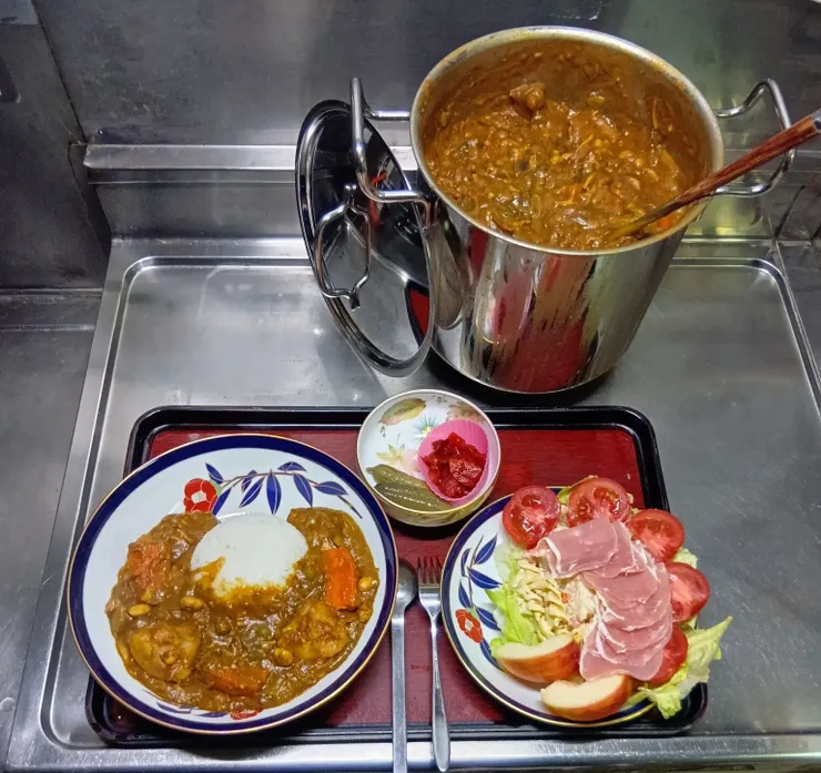 ポークカレー&ポテトフジッリ生ハムサラダ