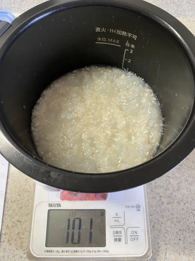 【3】米1合150gと水100gを合わせて30分くらいおく。