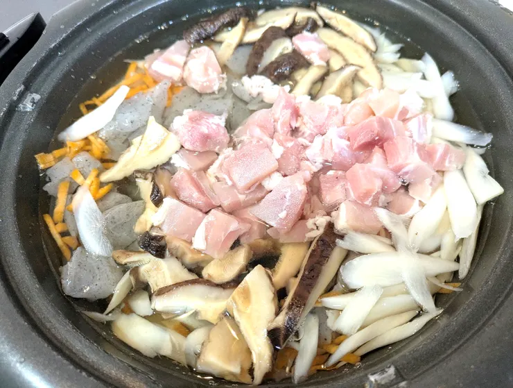 具材は鶏もも肉・椎茸・こんにゃく・ゴボウ・人参にしました