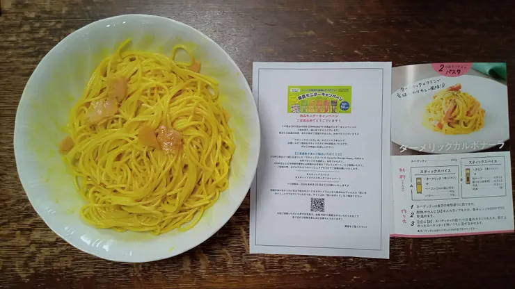 完成した「ターメリックカルボナーラ」を食べてみると、柔らかなカレーの味、香りを感じました。