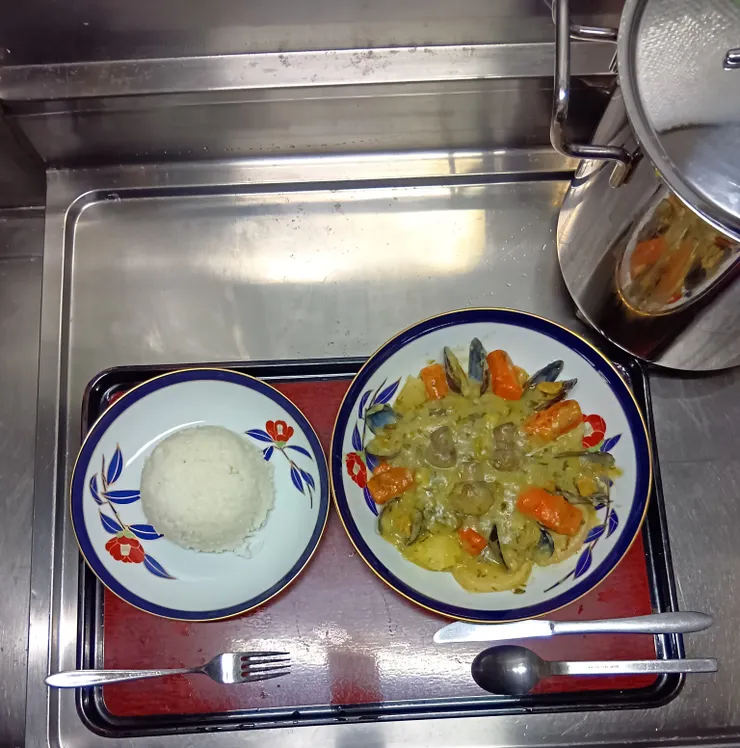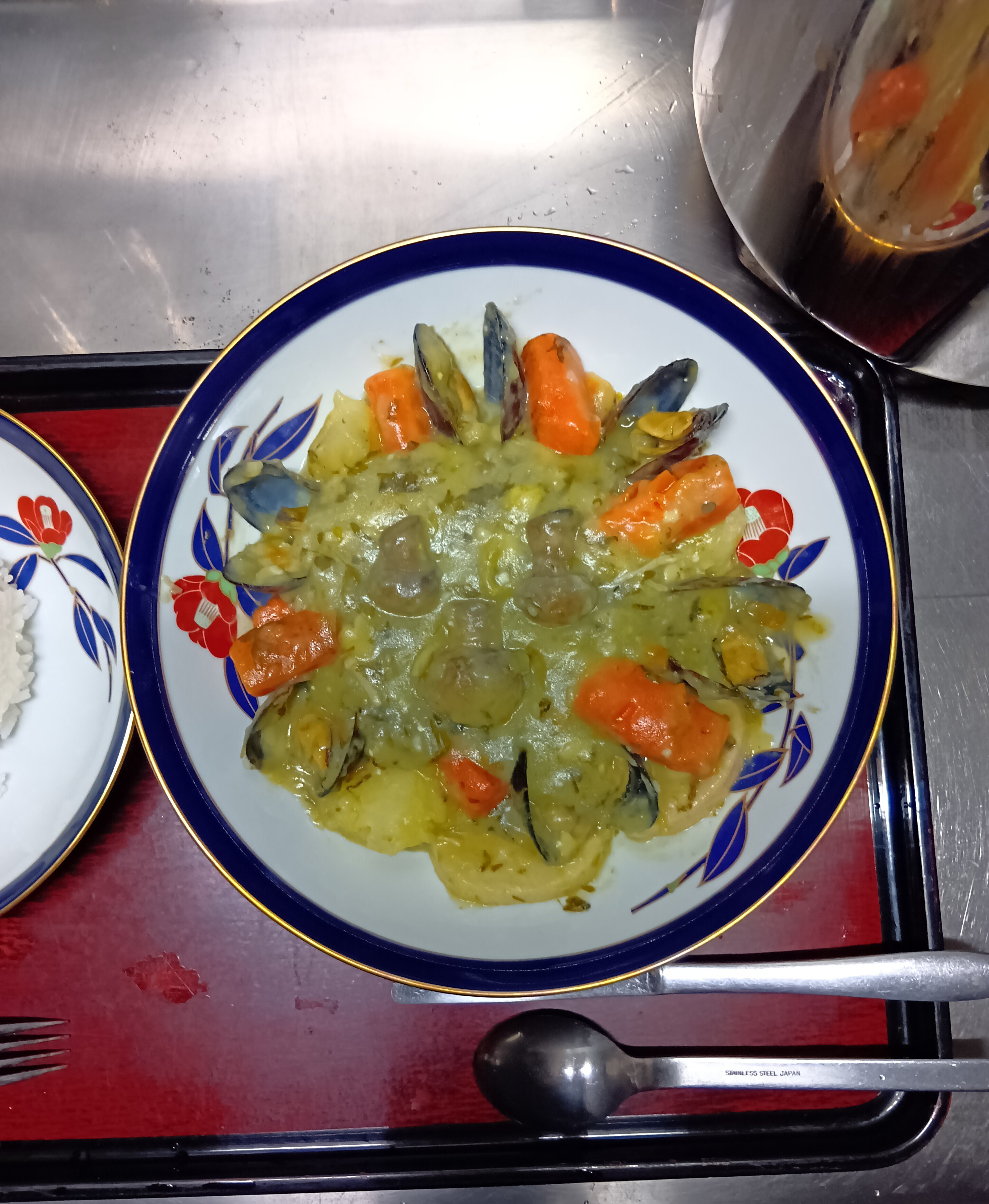 ムール貝など、いろんな食材が盛りだくさんで豪華なクリームシチューですね😋♪