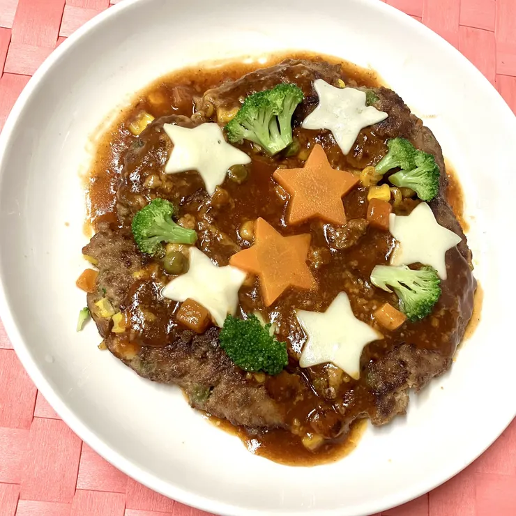 クリスマス仕様のハンバーグ、とってもかわいいです♪