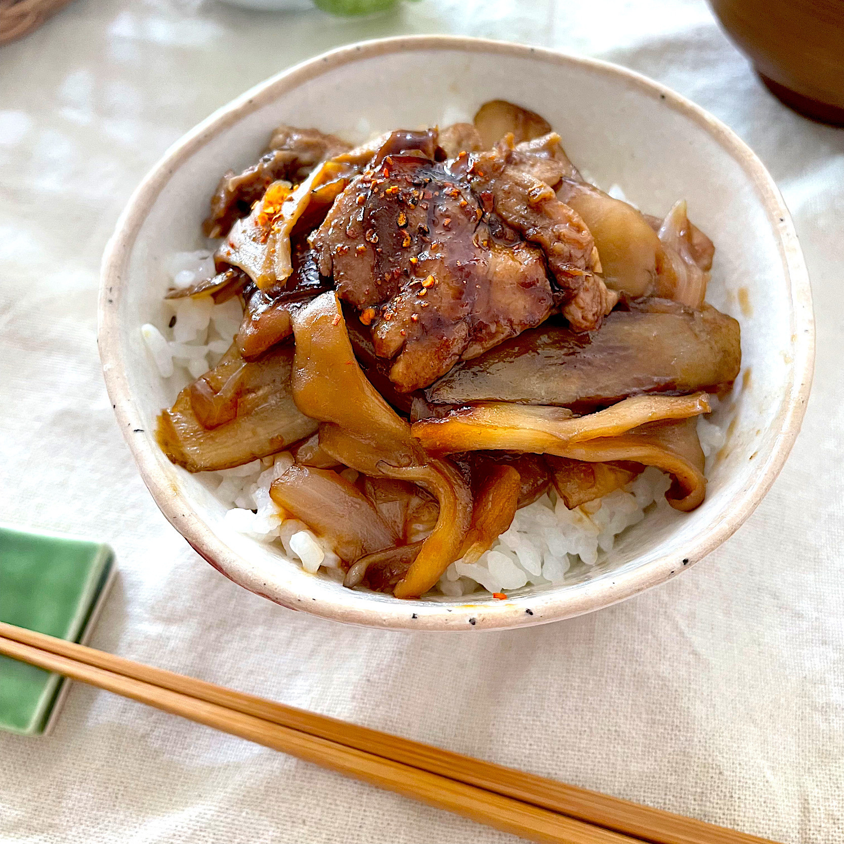 豚丼に七味唐からし、間違いないですね👀✨