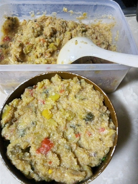 圧力鍋で野菜を蒸し煮にして、おからを混ぜ込んで食べます。