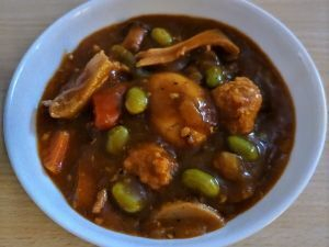 投稿を表示鶏ひき肉だんごカレー🍛とっても美味しそうな色になってて、枝豆のグリーンも可愛く目立ってますね〜👀スパイシーで美味しそう✨️