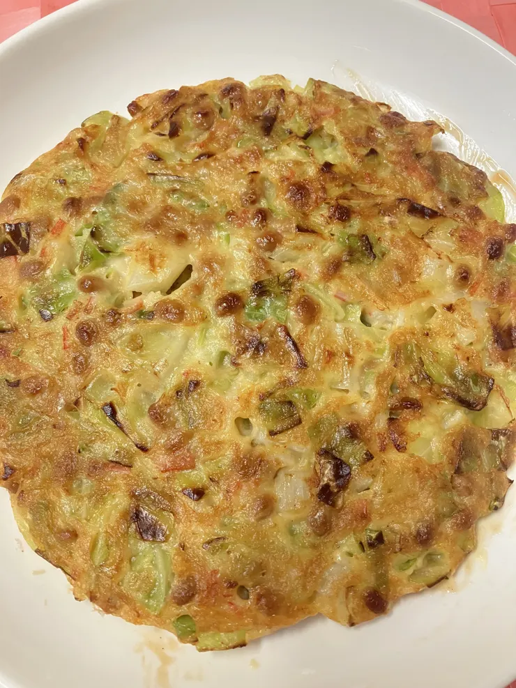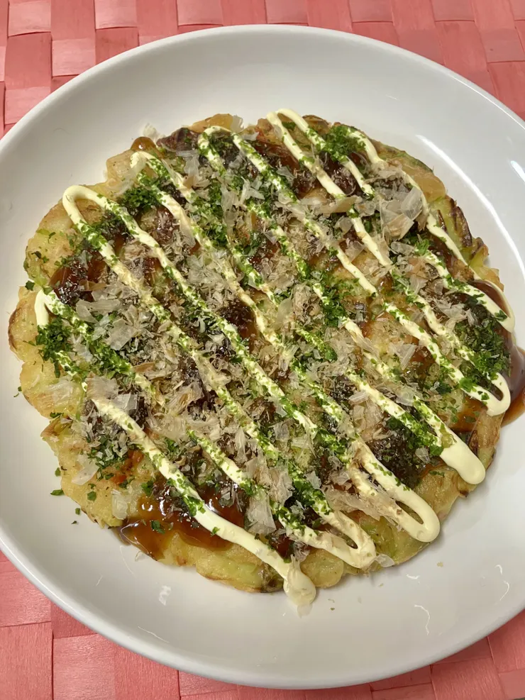 イタリアン風のお好み焼き、初めて作りましたが、バジルの香りがよくて美味しい〜と夫にも大好評でした🤗