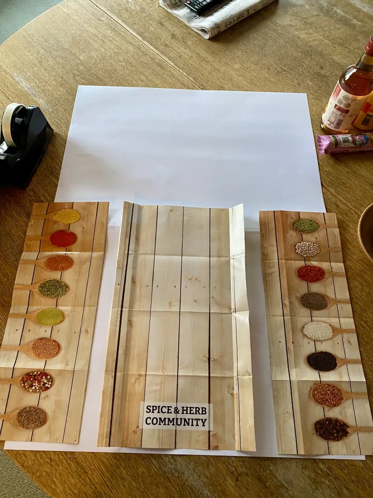8️⃣両側のスパイス入りスプーンの柄の紙を置いてみる。