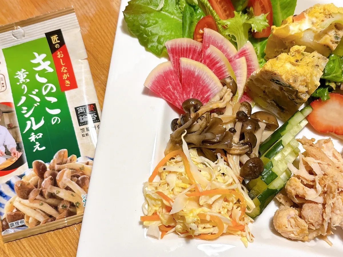 「きのこの香りバジル和え」
