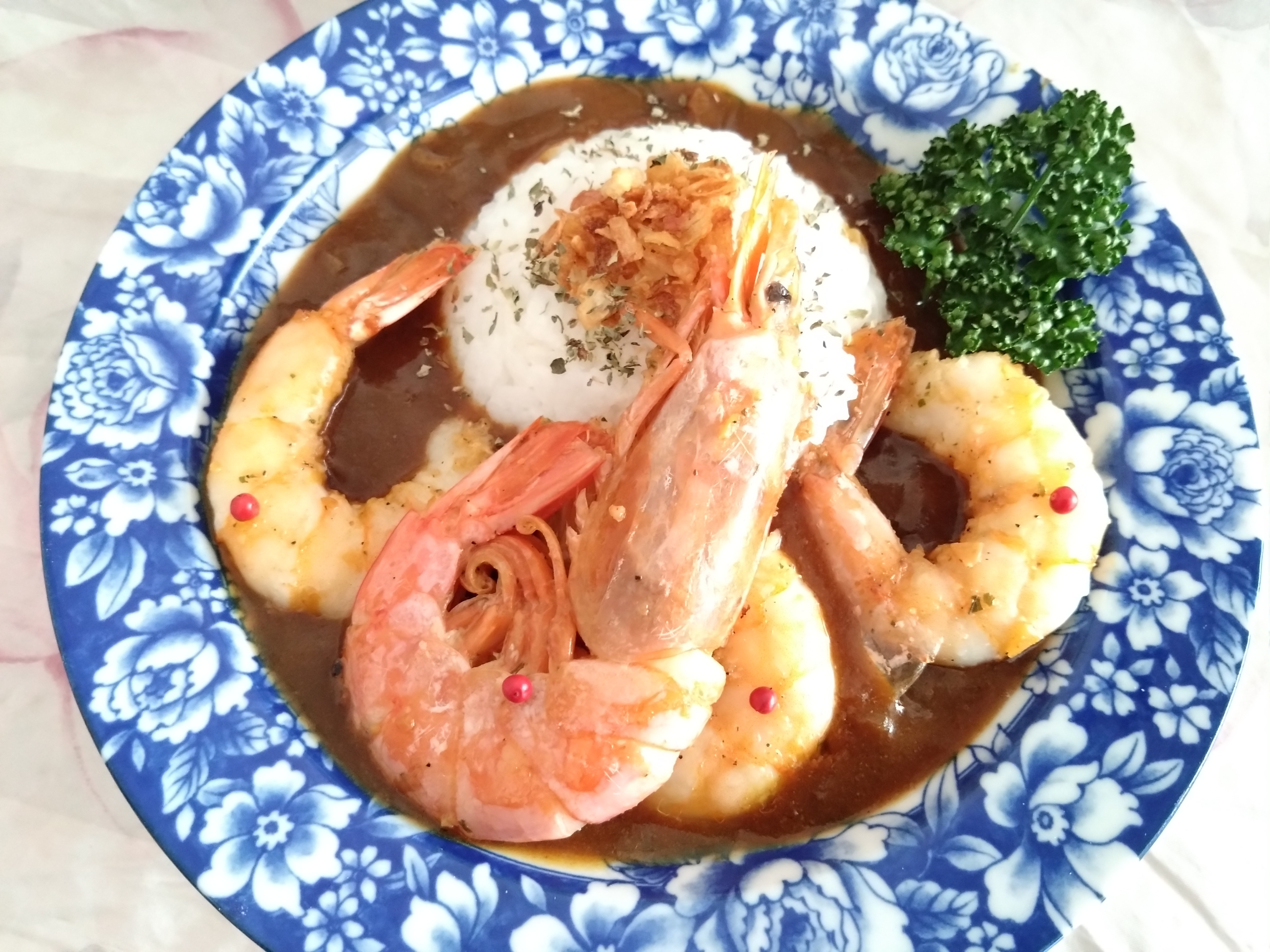 カレーもガーリックシュリンプも好きなのでたまりません🦐