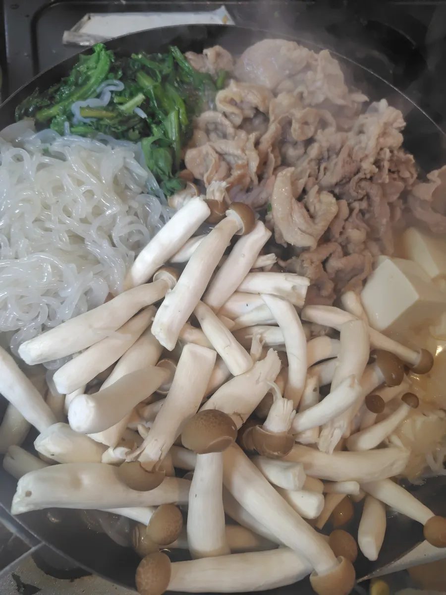 我が家は、牛肉、白菜、ネギを入れますね。