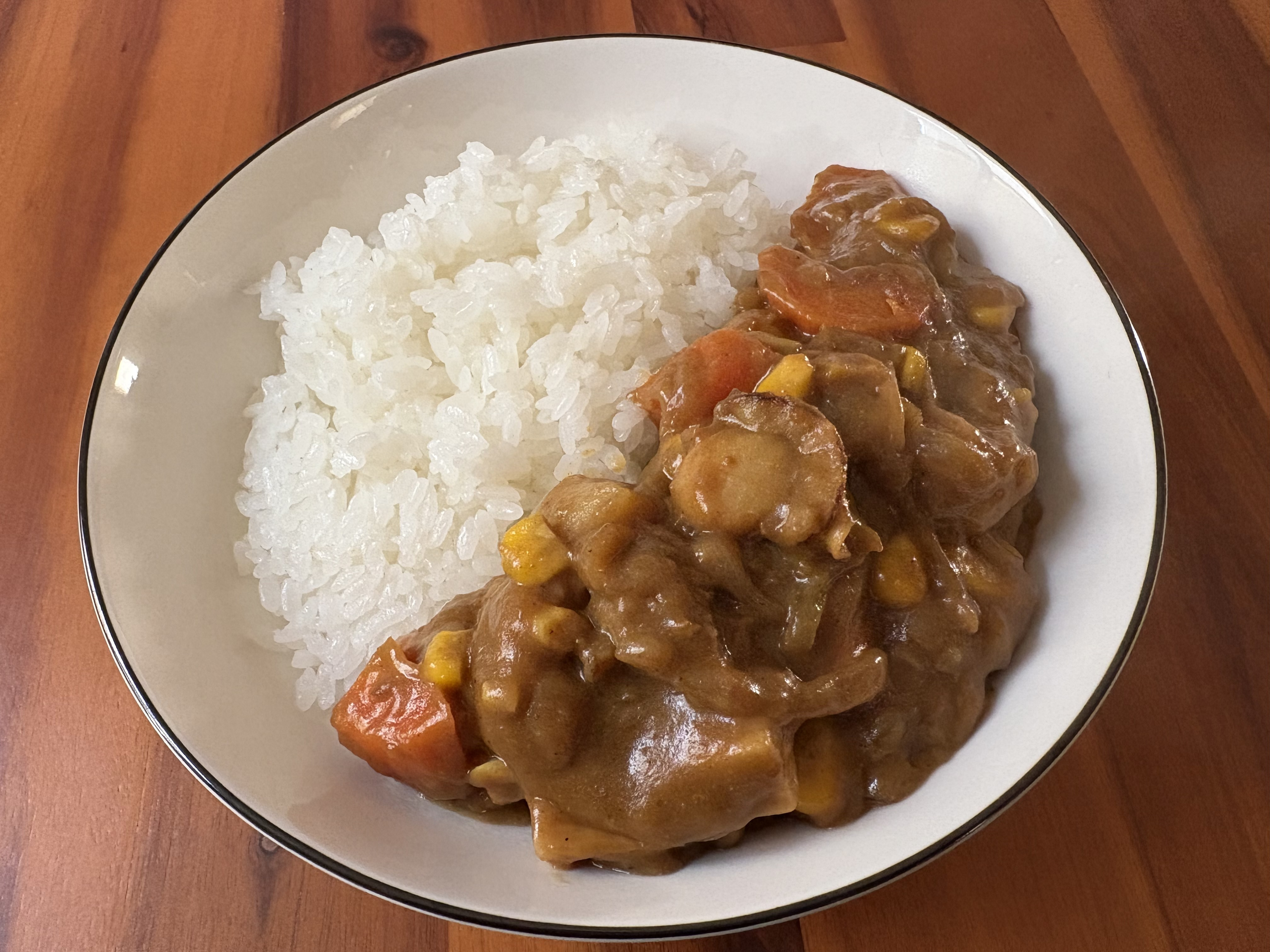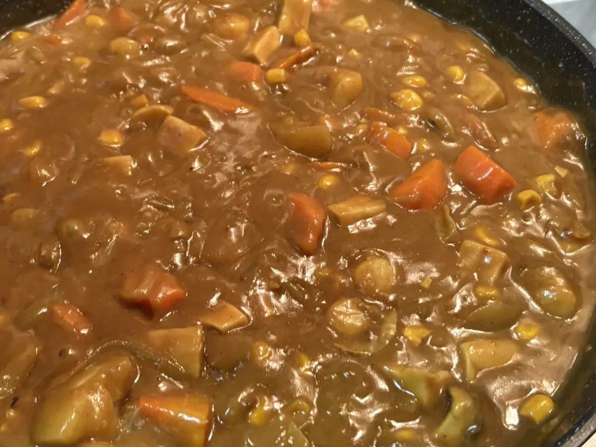 ホタテの旨み、野菜の甘さもあり、ゴールデンカレーのスパイシーさも感じられるカレーが出来上がりました。仕上げに牛乳を入れた事でクリーミーな味わいです(^^)